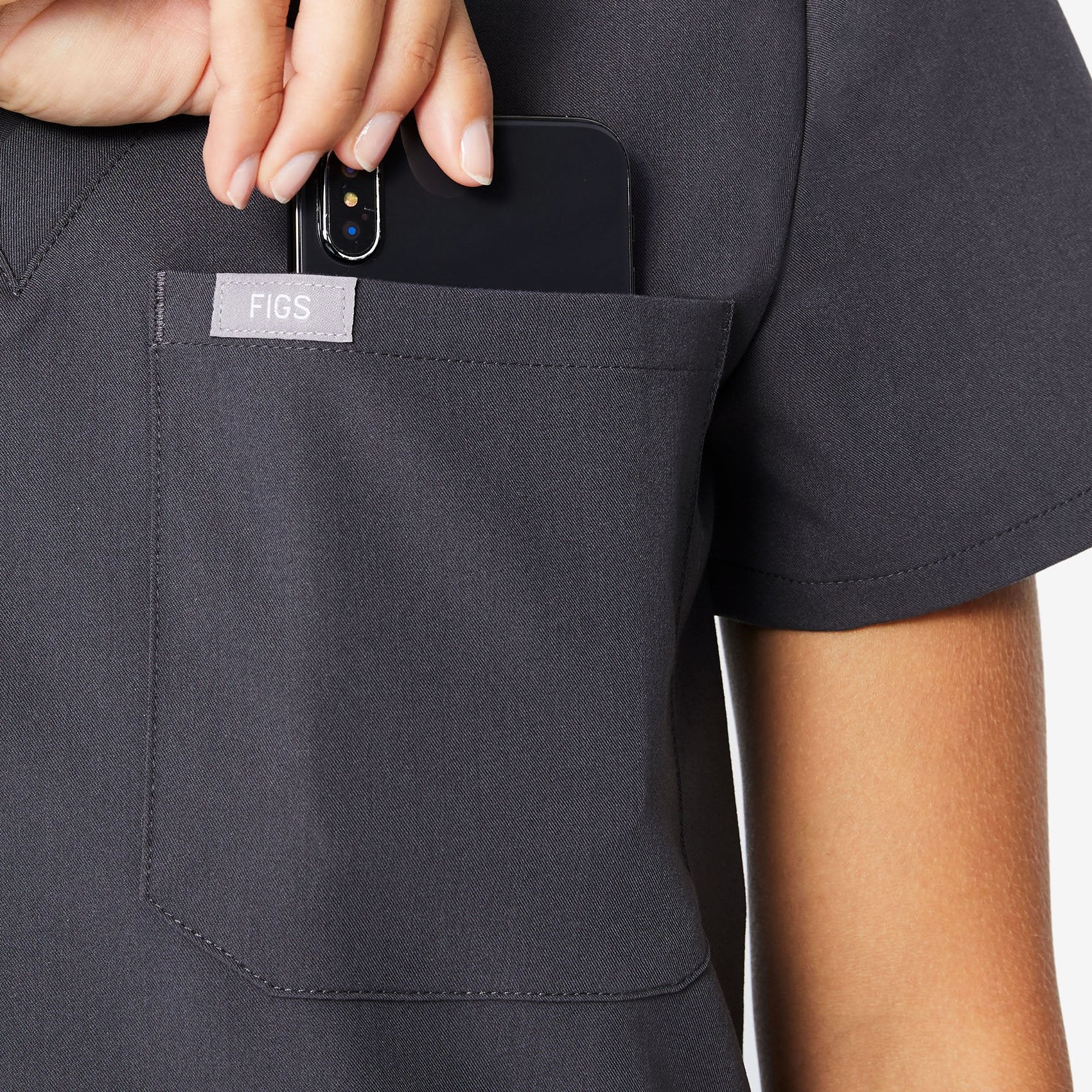 Simple and clean, but far from basic. The Catarina has a flattering V-neck, single chest pocket and slim (but not too slim) fit — plus it features our proprietary FIONx fabric. Ta-da.